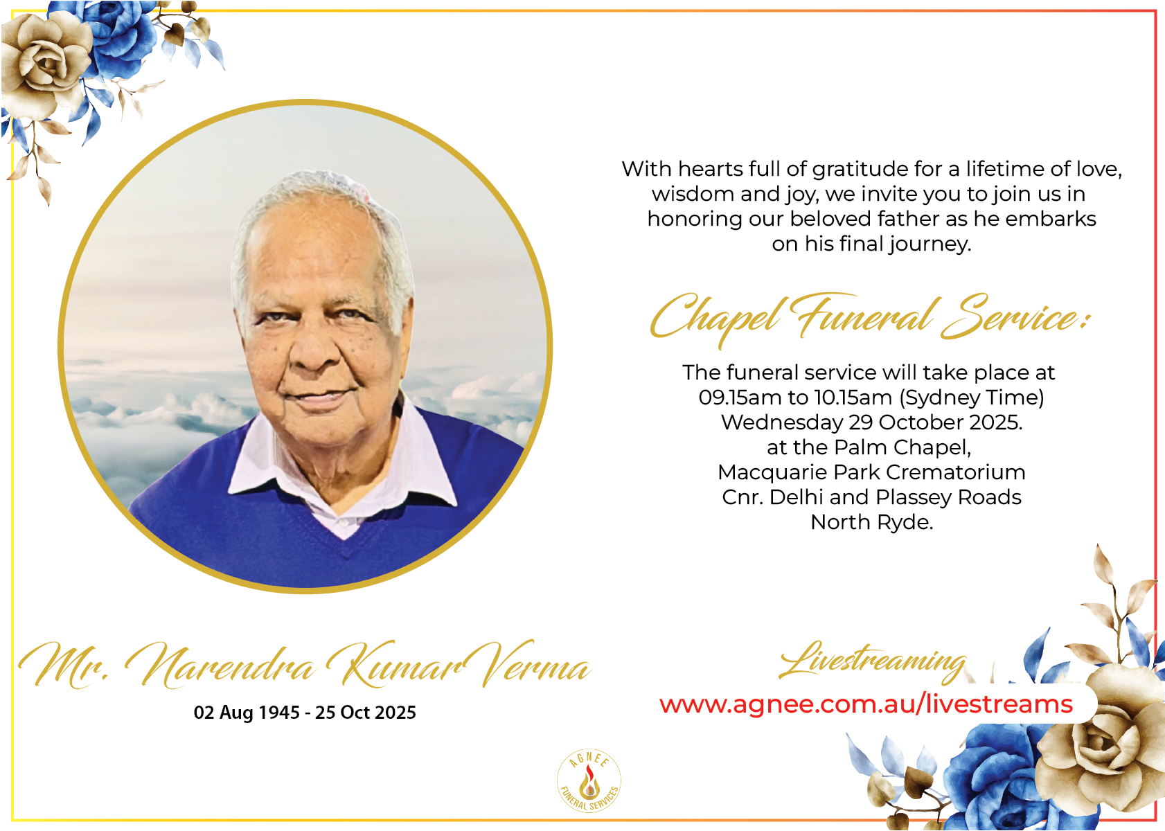 The Home Pooja will be livestreamed on the Facebook Page.
